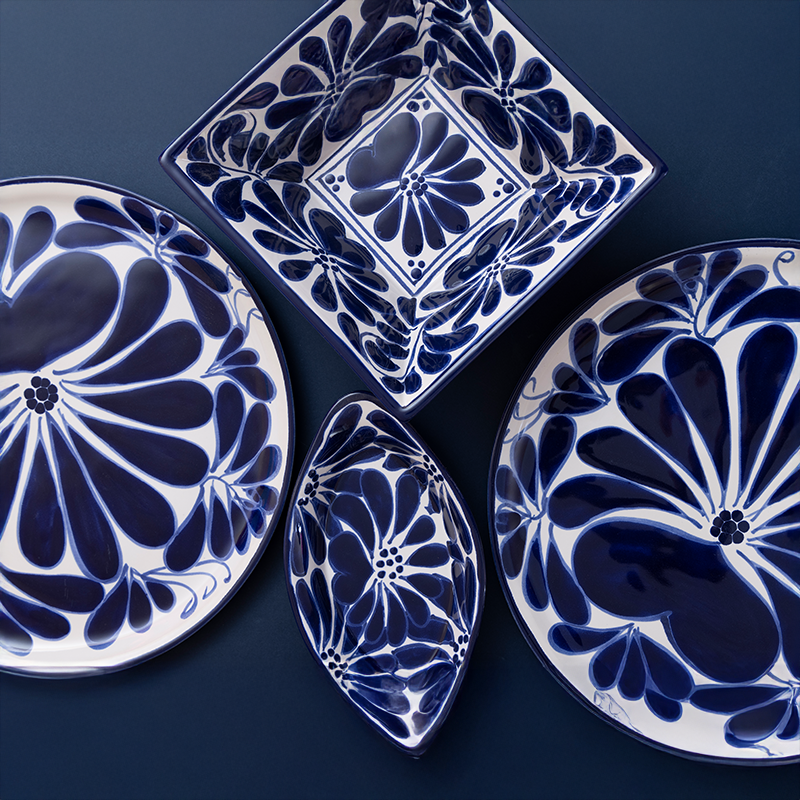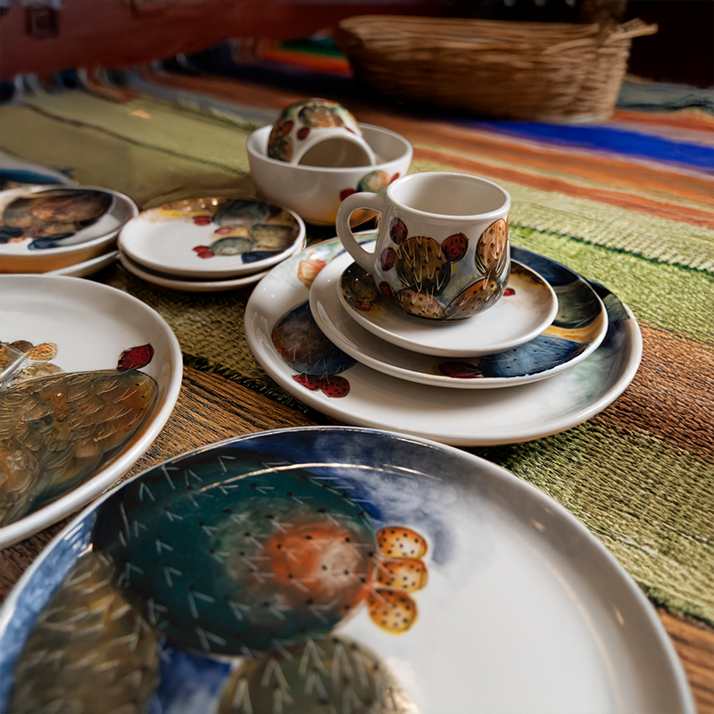 Vajillas de cerámica hechas y pintadas a mano por artesanos. Piezas únicas que fusionan tradición y creatividad en cada detalle.